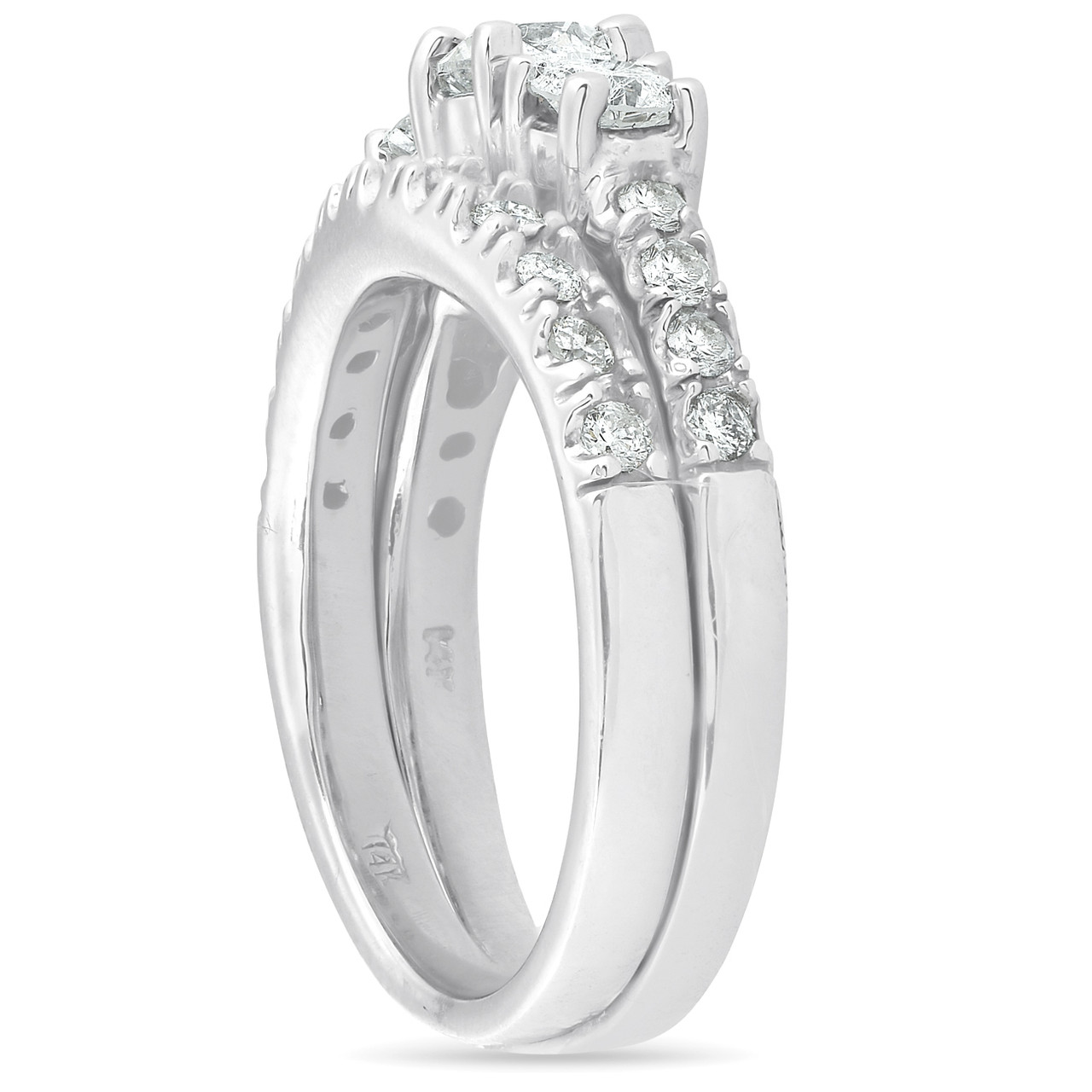 1 1/2 ct 3-Stone Diamond Engagement Ring Matching Wedding Band Set White Gold (H-I, I1)