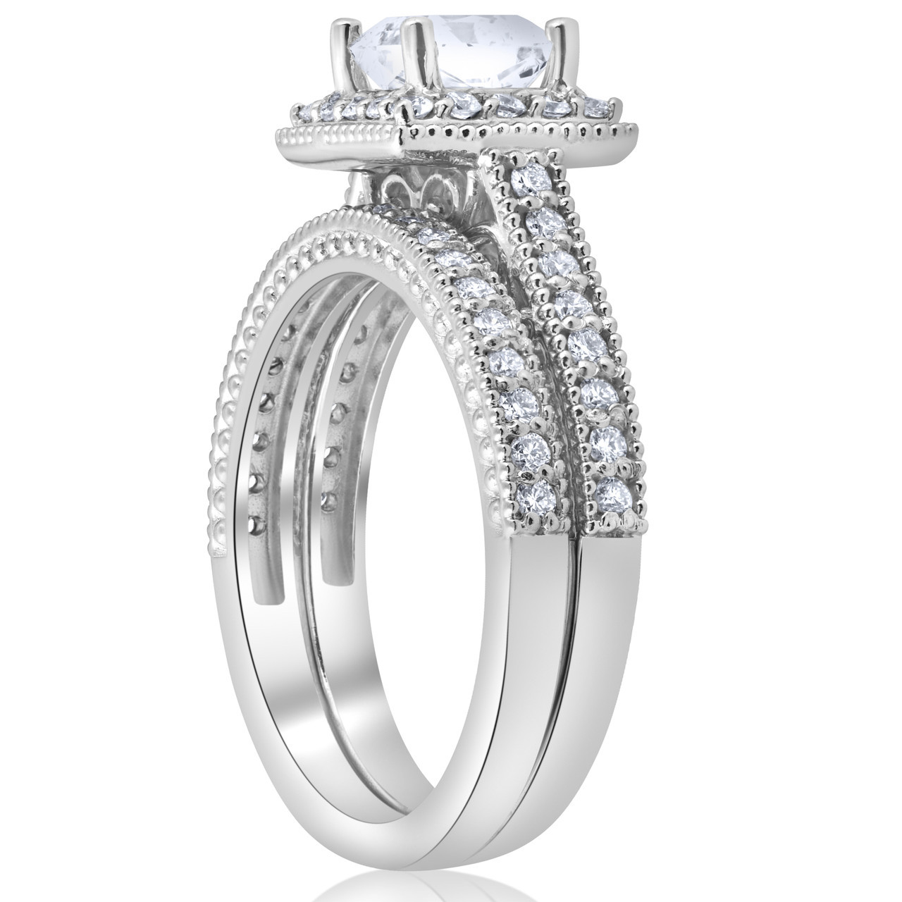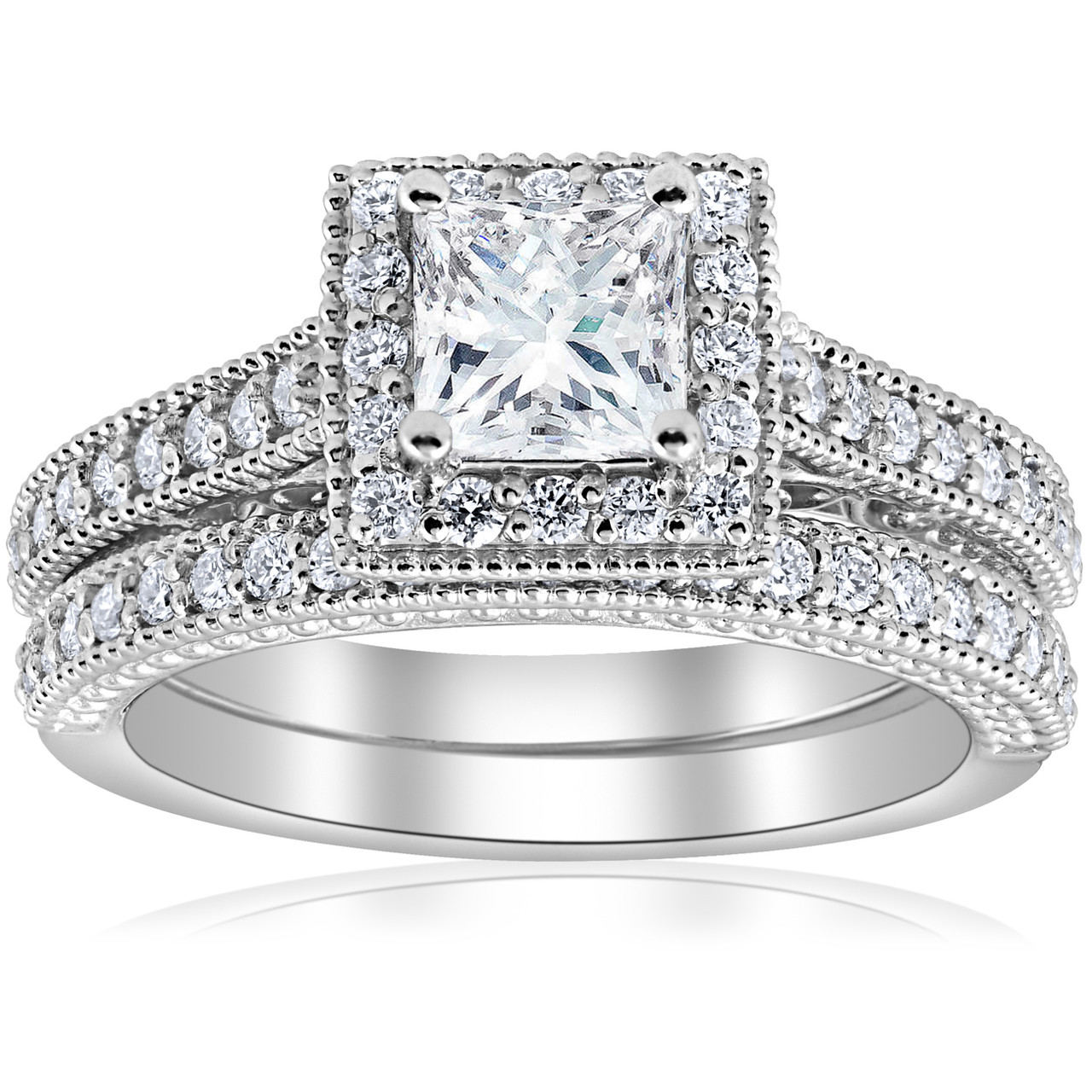 1 1/2ct Princess Cut Halo Vintage Diamond Engagement Ring 14k White Gold (G-H, SI)