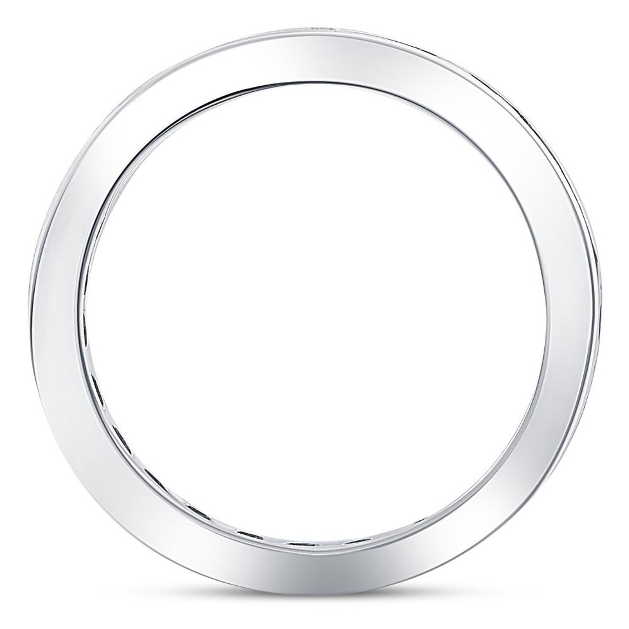 Womens ring features round brilliant cut genuine diamonds and pink sapphires. All diamonds are channel set in solid 14k white gold high polished mounting.