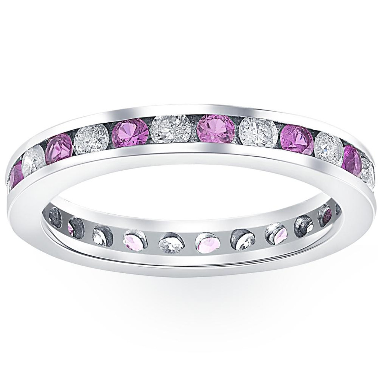 1 1/2ct Pink Sapphire & Diamond Eternity Channel Set Wedding Ring 14k White Gold (G-H, I1)
