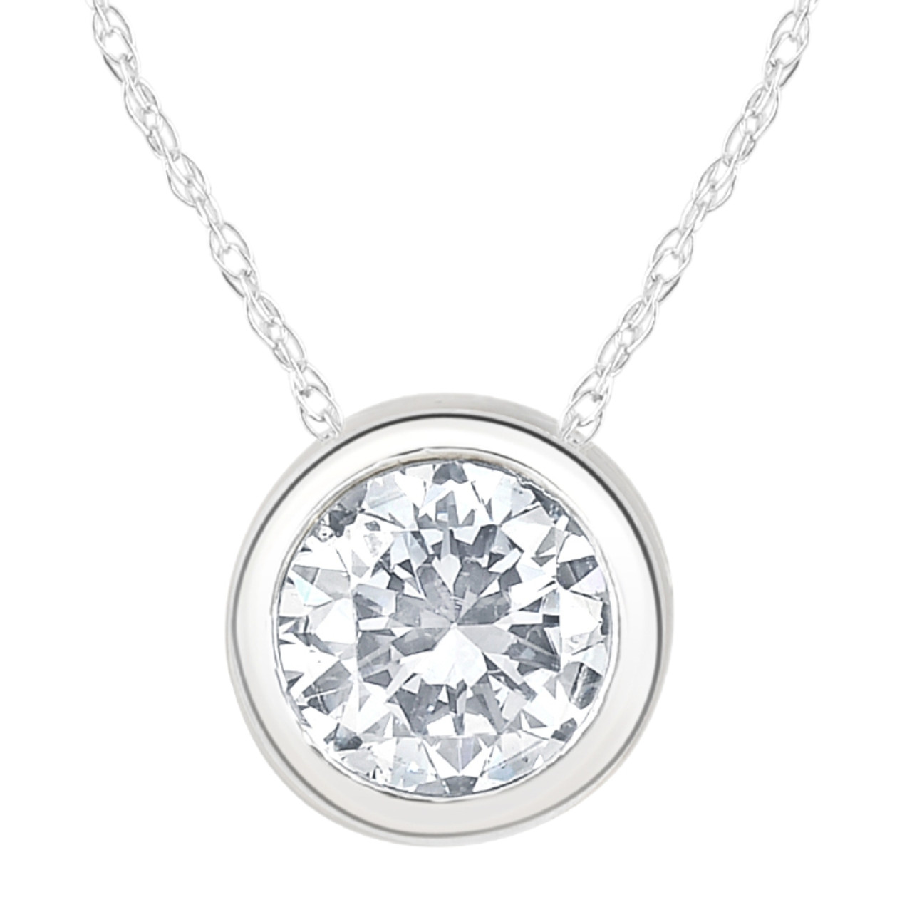 1 1/2Ct Solitaire Round Cut Lab Grown Diamond Bezel Necklace Pendant (F-G, VS)