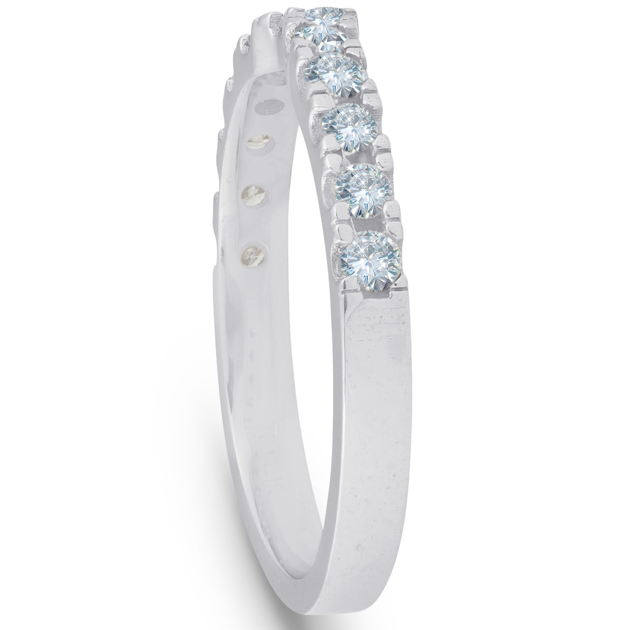 This womens ring features 13 round brilliant cut natural diamonds. The diamonds are prong set in solid 14k white gold.