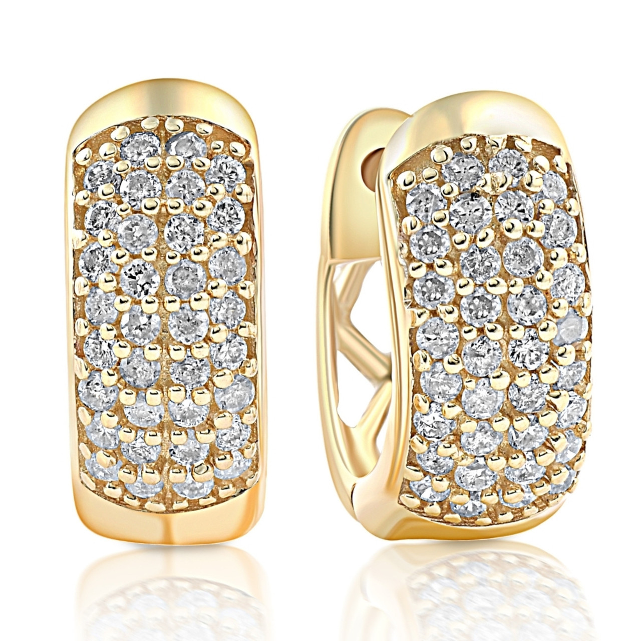 1/4ct Diamond Pave Huggie Hoops Tiny Women's Earrings Yellow Gold 1/3" Tall (G-H, I2-I3)