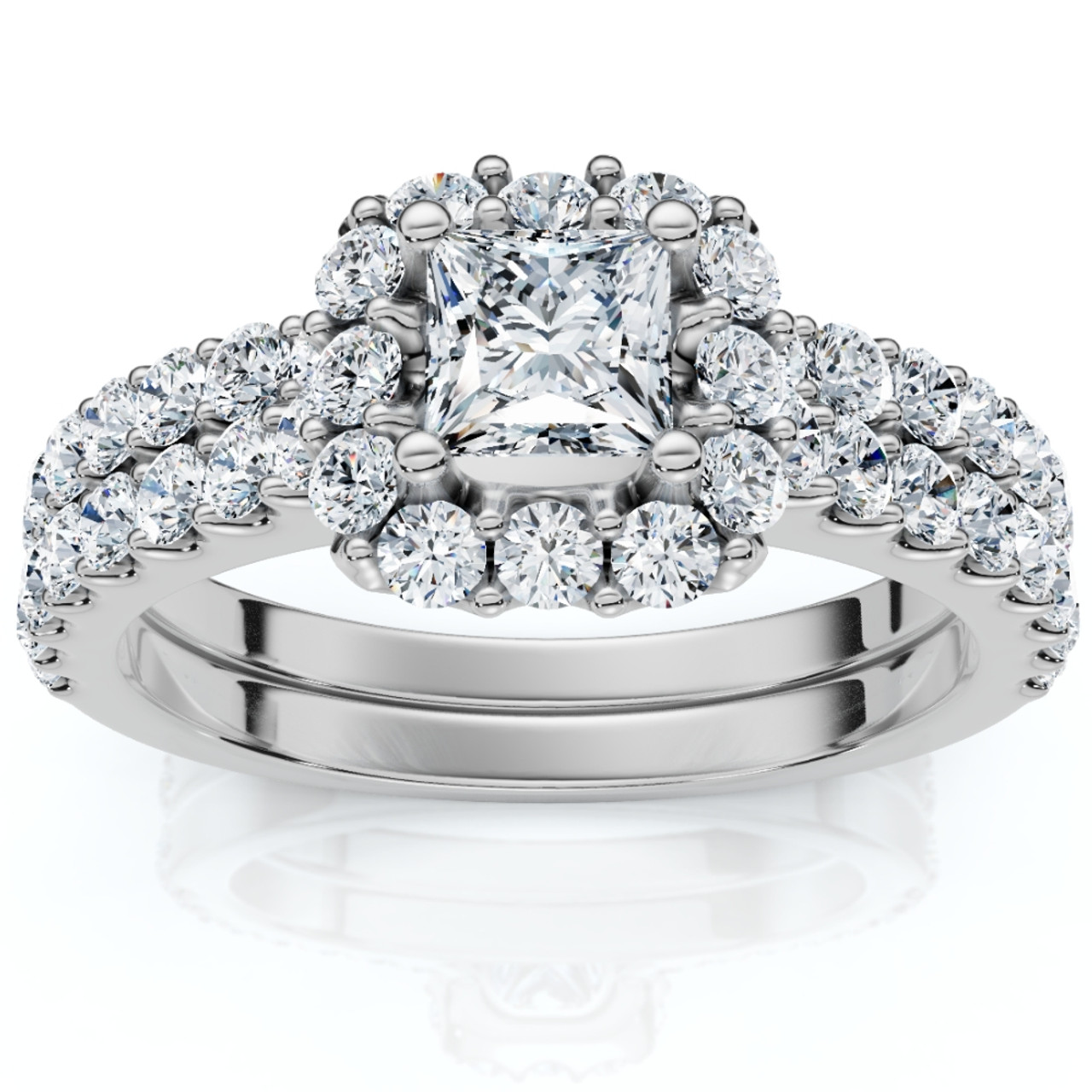 1.50Ct Princess Cut Halo Diamond Engagement Wedding Ring Set 14k Gold Lab Grown (F-G, VS)