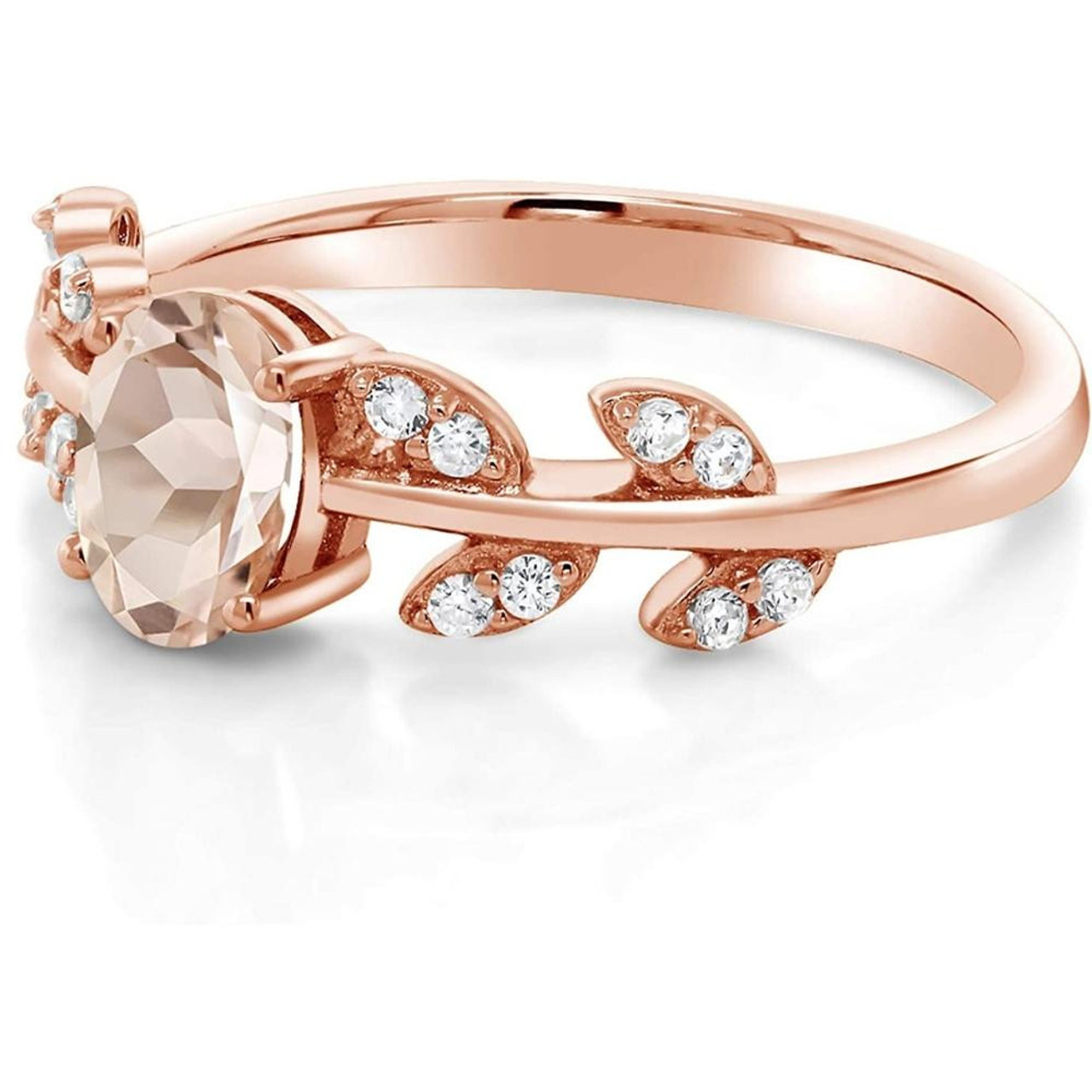 1 Ct Oval Morganite & Diamond Vine Engagement Anniversary Ring in 14k Rose Gold (G-H, I1)