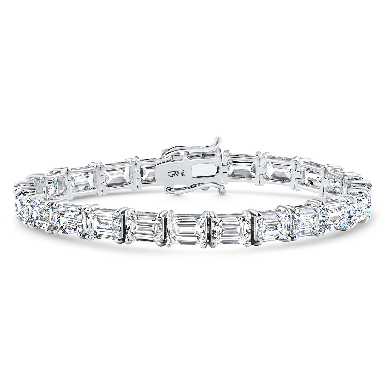 10 - 26 Ct Emerald Cut Diamond East West Tennis Bracelet 14k Gold Lab Grown 7" (F-G, VS)