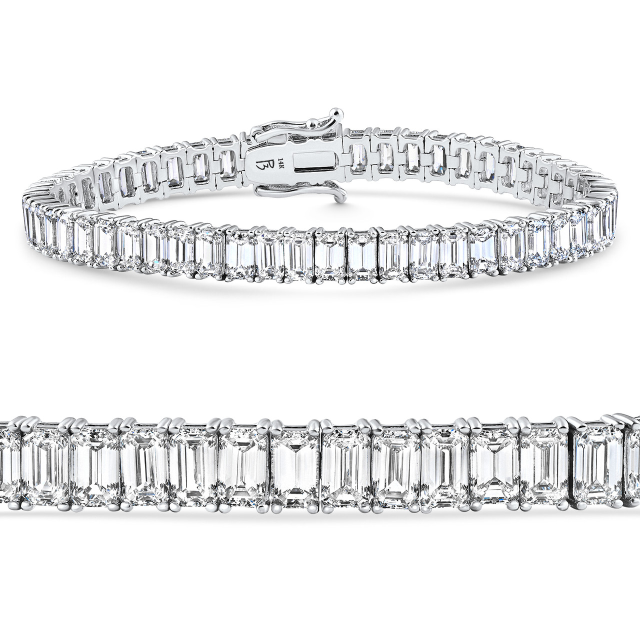 10 - 30Ct Emerald Cut Diamond Tennis Bracelet 14k Gold Lab Grown 7" (F-G, VS)