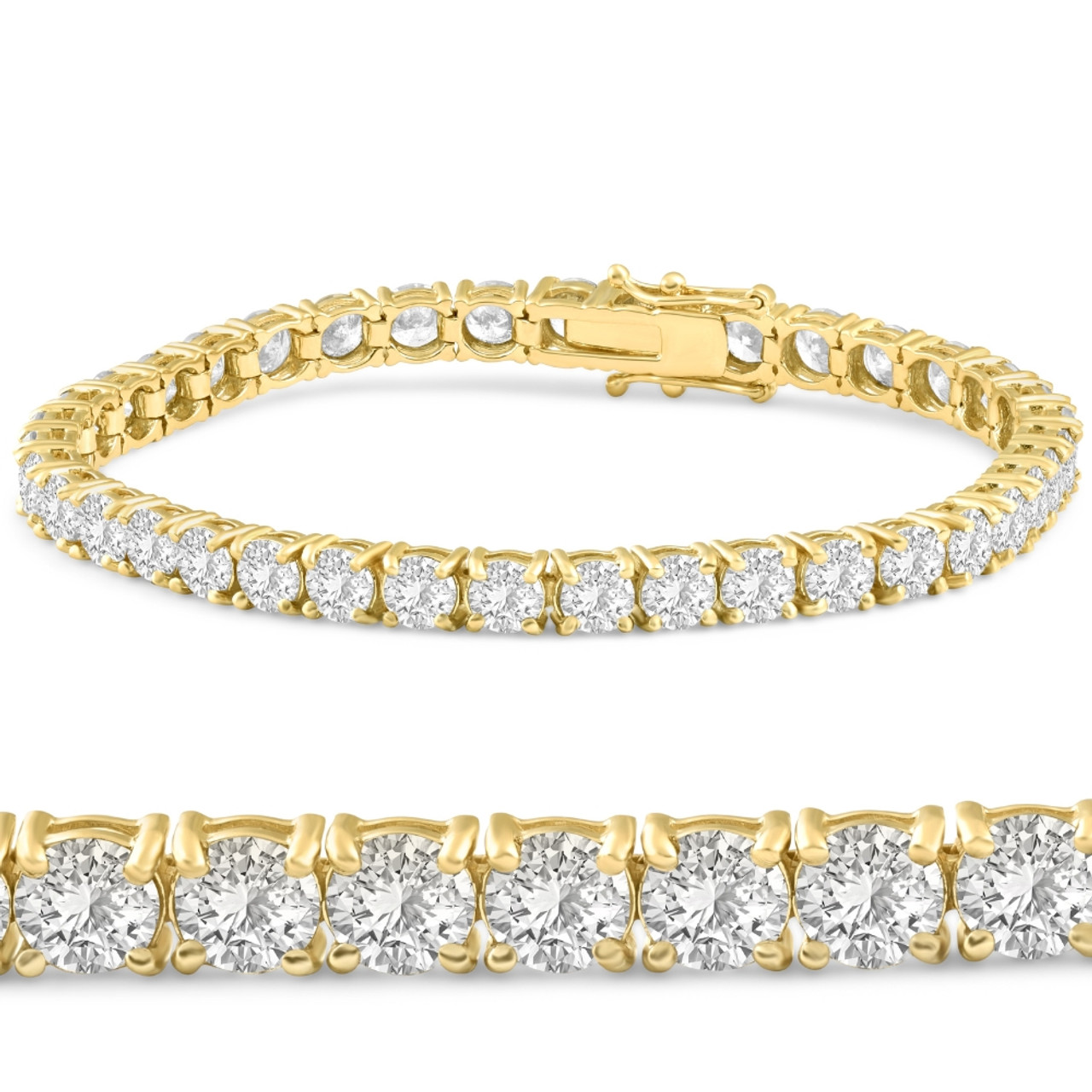 13 Ct. Round Cut Natural Diamond 14K Yellow Gold Round Cut Tennis Bracelet 7" (H-I, I2-I3)