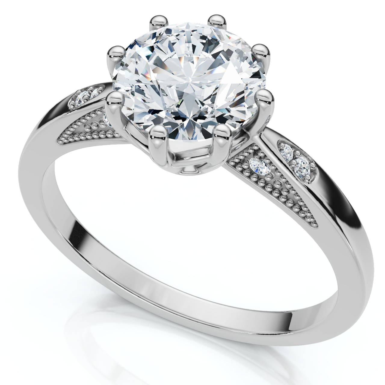 Make a royal statement with the elegant 1Ct Crown Setting Diamond Engagement Ring. This captivating ring features a brilliant 1Ct lab-grown diamond, held securely aloft by a unique and intricate crown-like setting that truly elevates its majestic presence. The design is further enhanced by subtle accent diamonds and delicate milgrain detailing on the shoulders of the band, adding an extra touch of sparkle and sophistication. Crafted in your choice of 14k gold or platinum, this certified diamond ring is a regal and beautiful symbol of your lasting love.