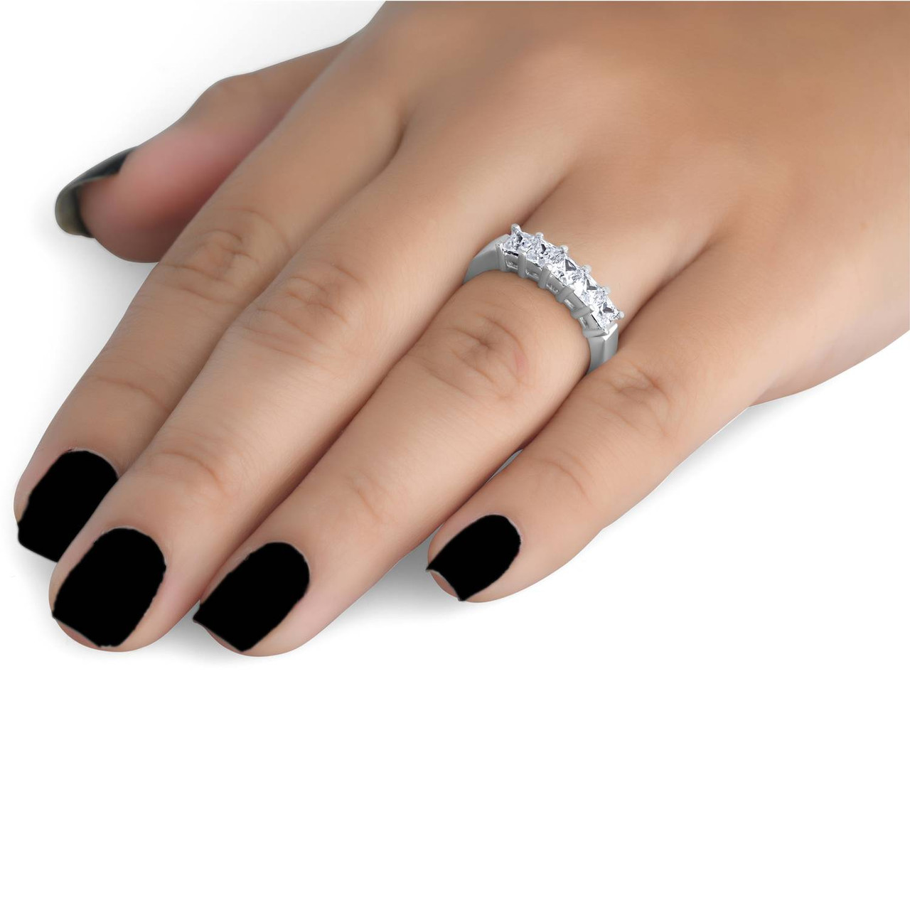 Diamond Wedding ring is adorned with 1ct of Square, Princess Cut Natural Diamonds. All Diamonds are G to H in color and I1 in clarity for maximum fire and brilliance. Stones are secured in a shared/common prong setting.