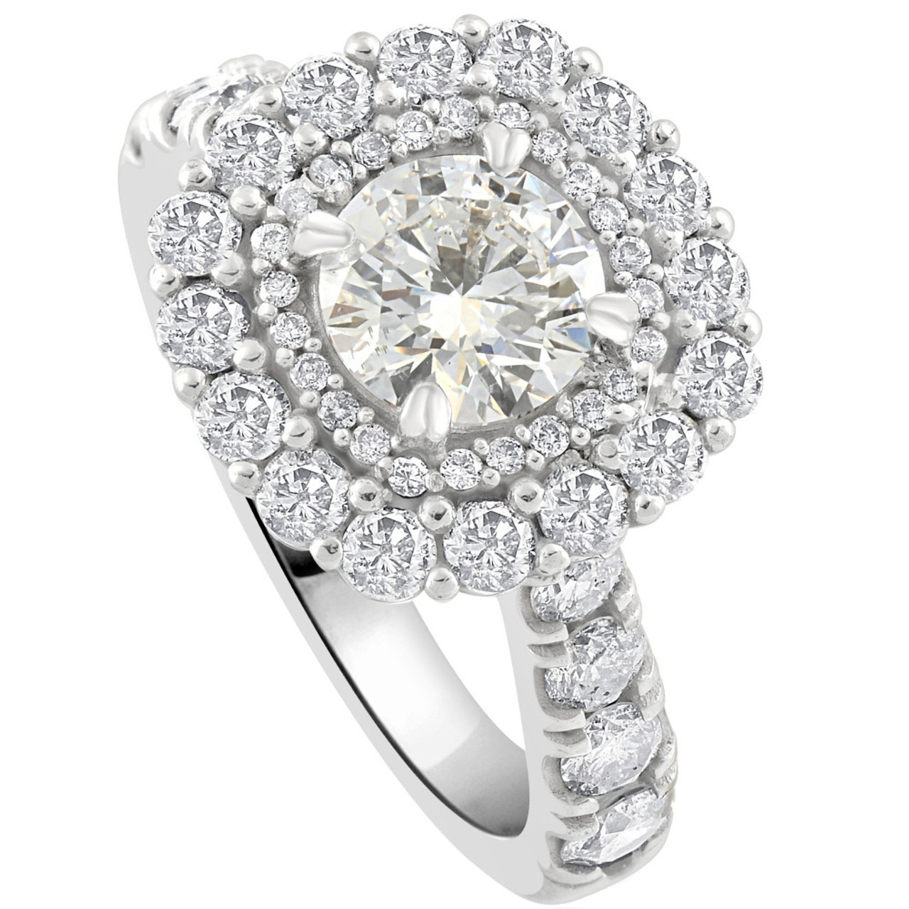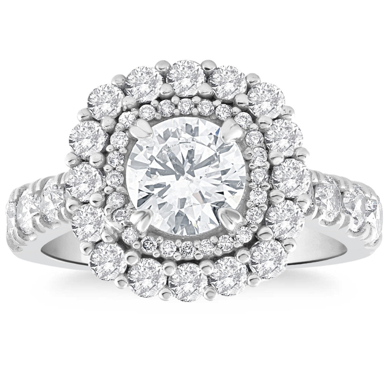 2 1/2Ct Cushion Halo Diamond Engagement Ring in 14k White or Yellow Gold (G-H, SI)