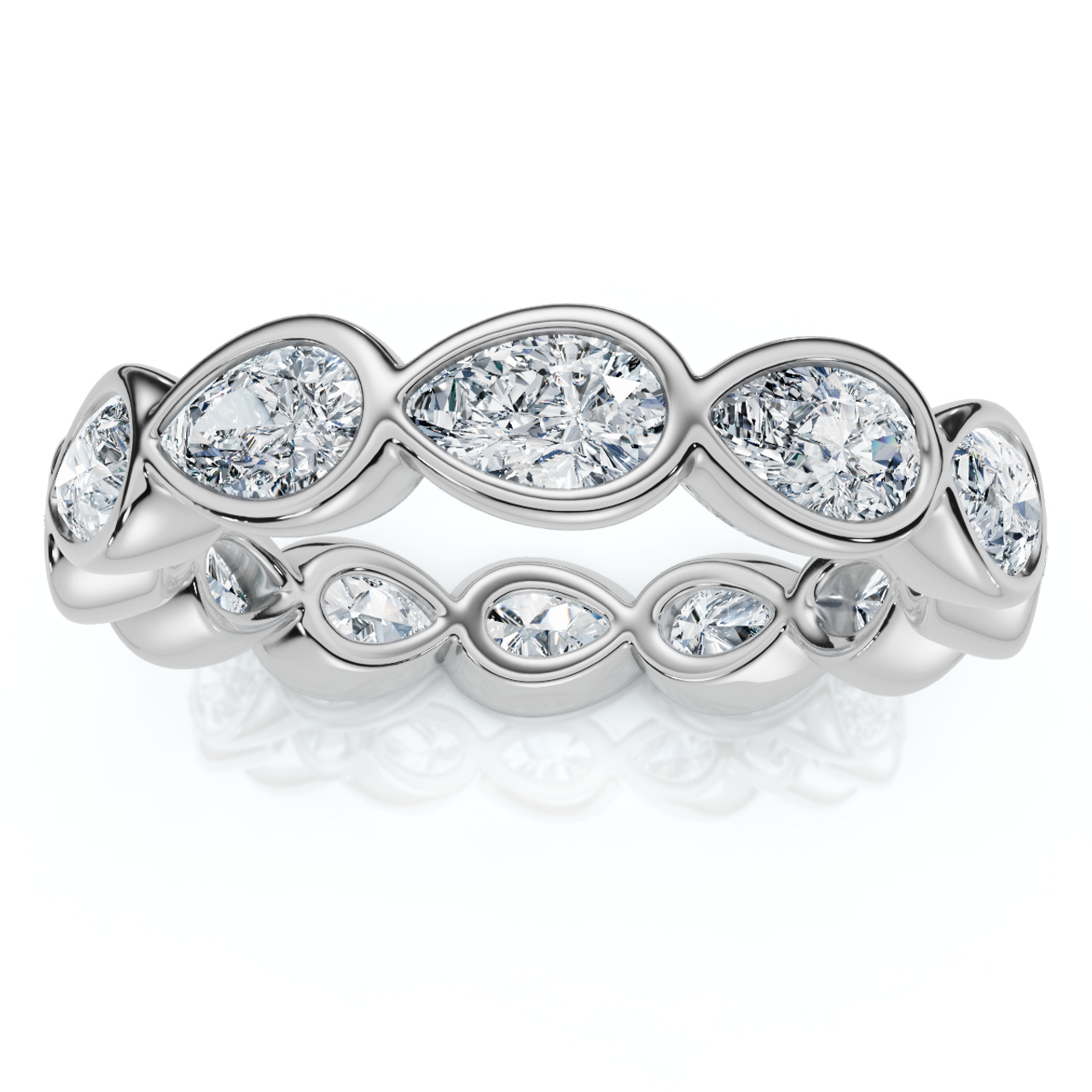 2Ct Pear Shape Bezel Diamond Eternity Wedding Ring 14k Gold Lab Grown (E-F, VS)