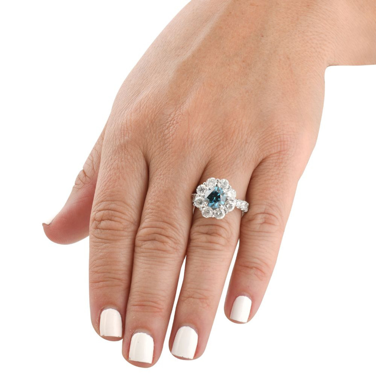 3 1/2Ct TW Blue & White Diamond Halo Engagement Ring 14k White Gold Lab Grown (G-H, SI)