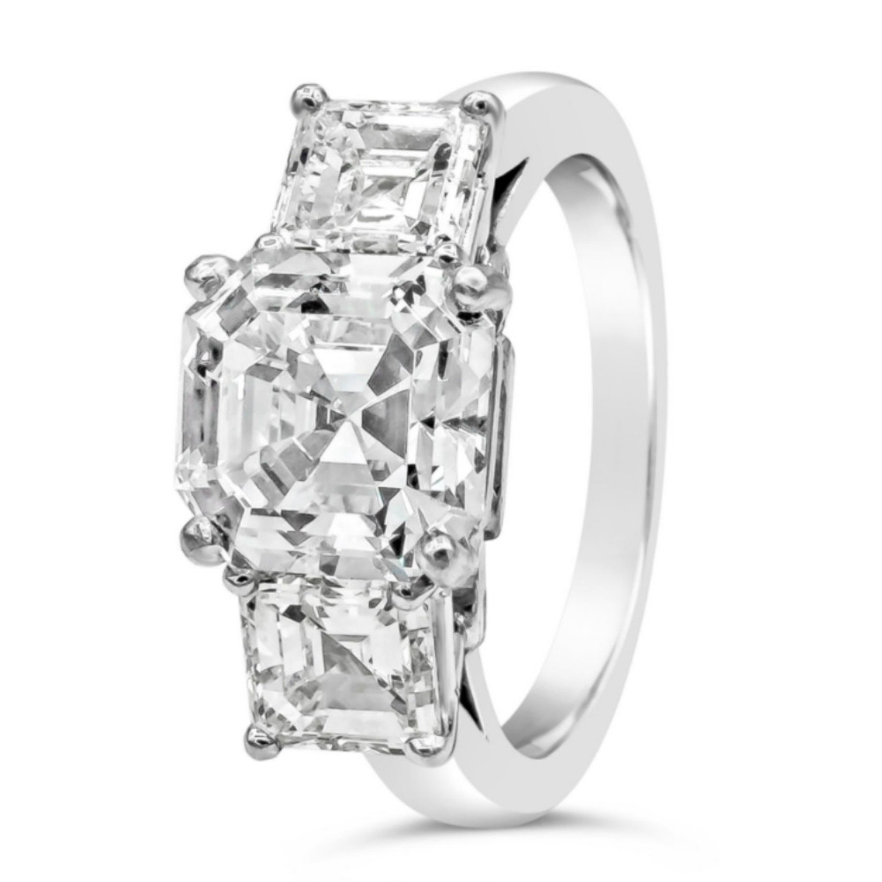3 3/4 Ct Three Stone Asscher Cut Moissanite Engagement Ring 14k White Gold (G-H, VS)