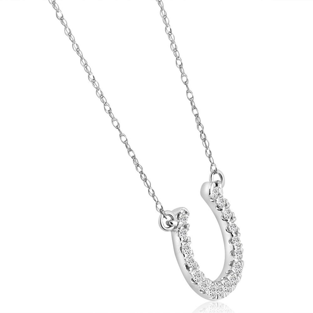 3/8Ct Natural Diamond Horseshoe Pendant Women's Necklace White Gold 18" (H-I, I2-I3)