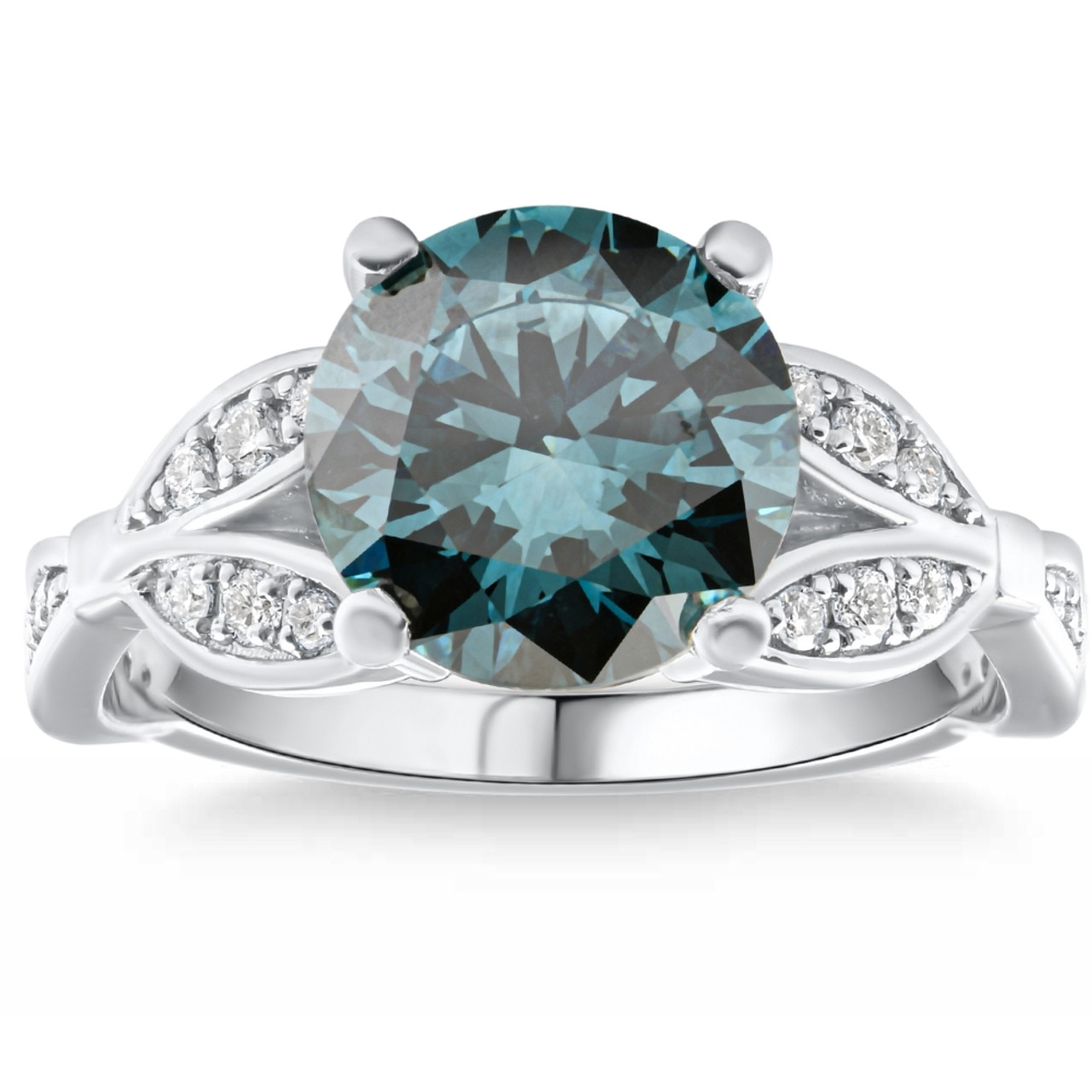 3 1/4Ct TW Blue & White Vintage Diamond Engagement Ring Lab Grown 10k White Gold (Blue, VS)