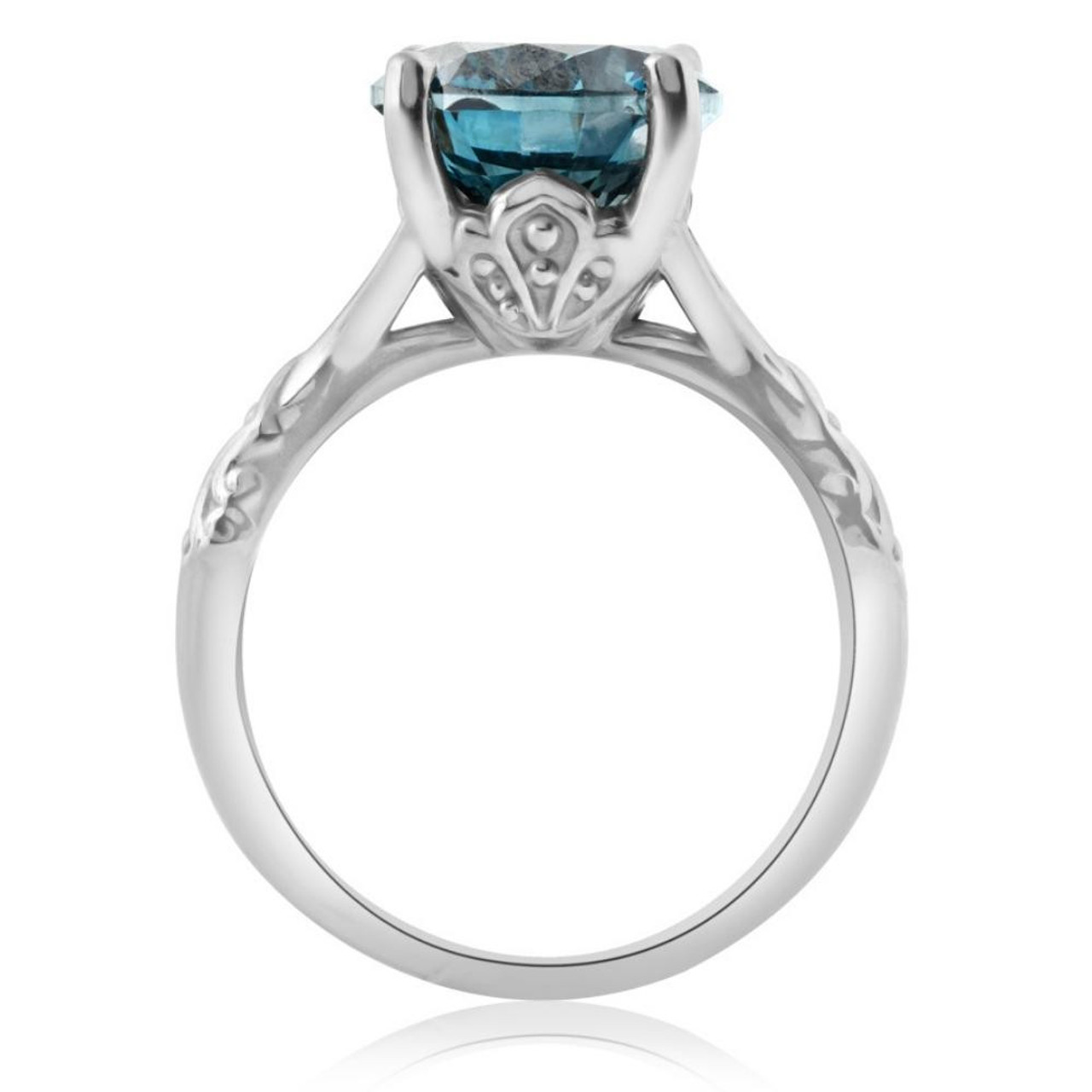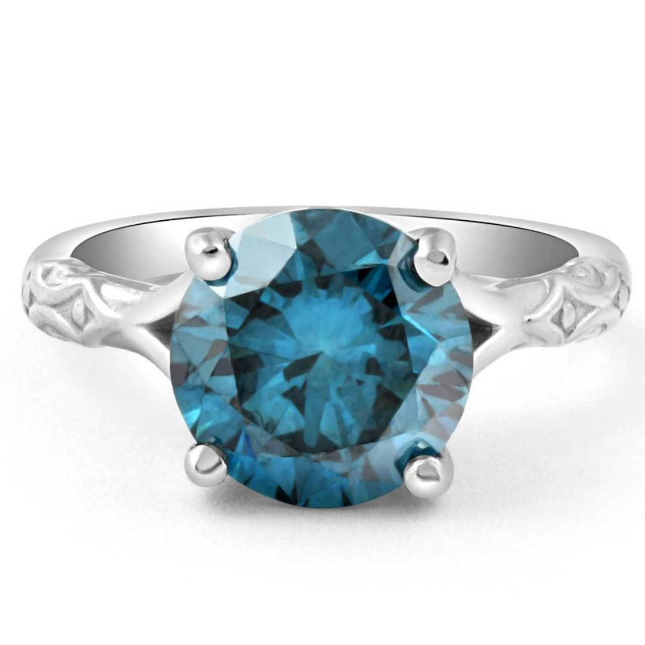 3Ct Blue Diamond Solitaire Vintage Engagement Ring Lab Grown in 10k White Gold (Blue, VS2-SI1)