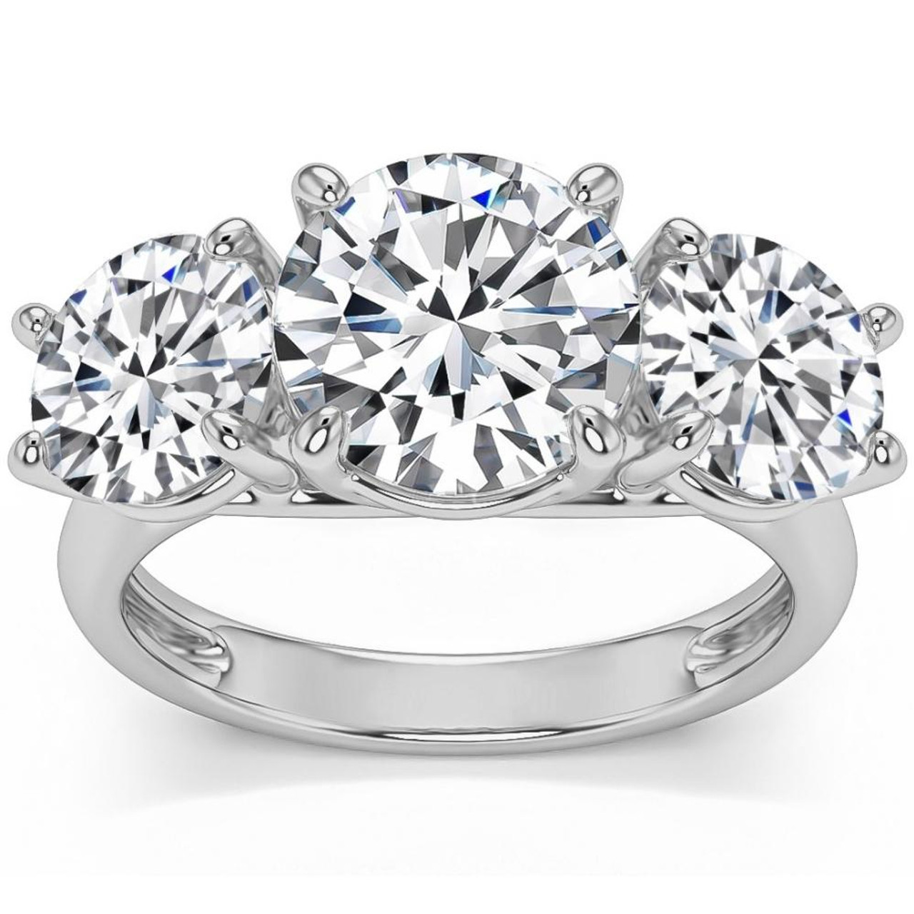 5 1/2Ct Three Stone Lab Grown Diamond Engagement Ring White Yellow or Rose Gold (G-H, VS2-SI1)