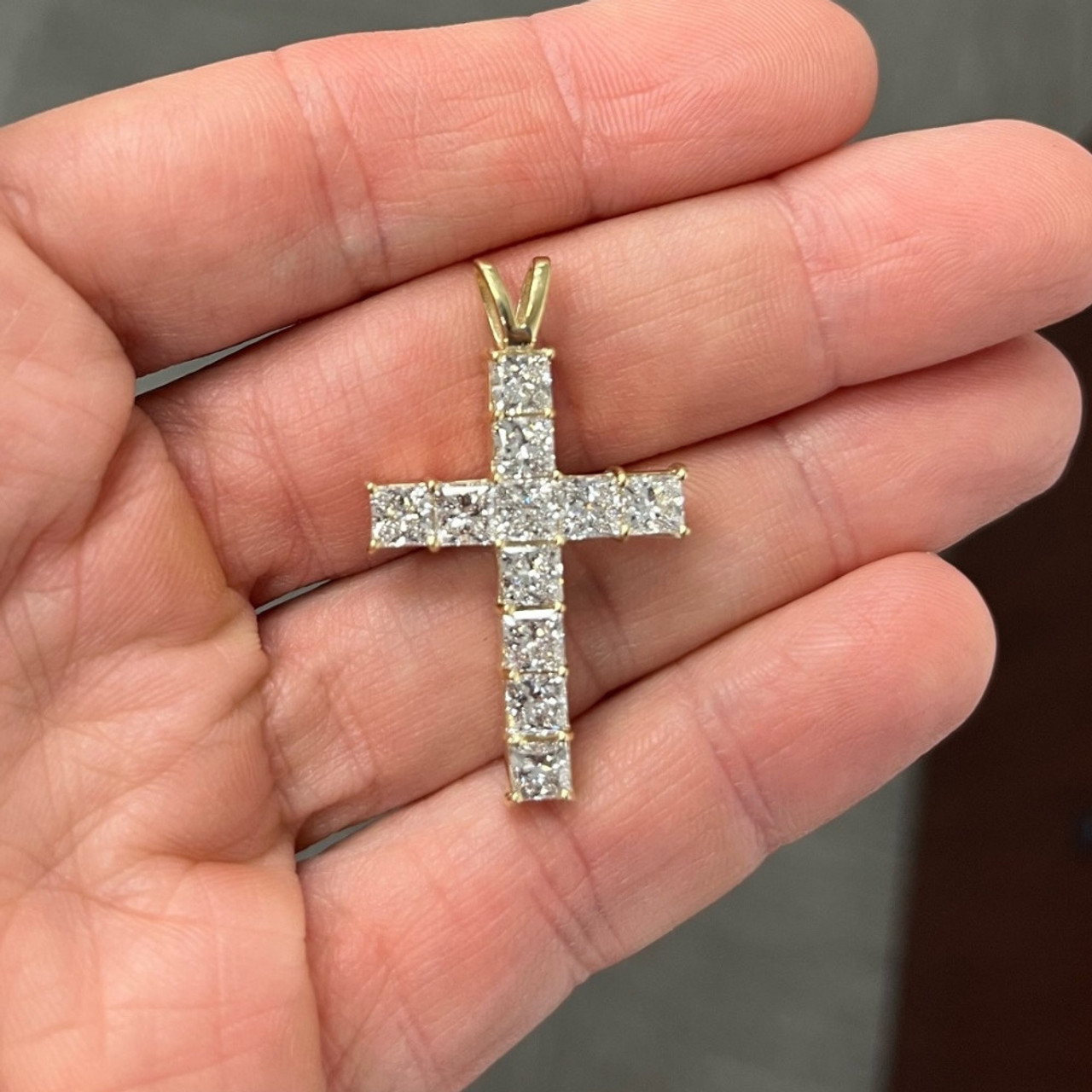 5.80Ct Princess Cut Diamond Cross Pendant 14k Gold Necklace Lab Grown 1 1/2" (G-H, VS)