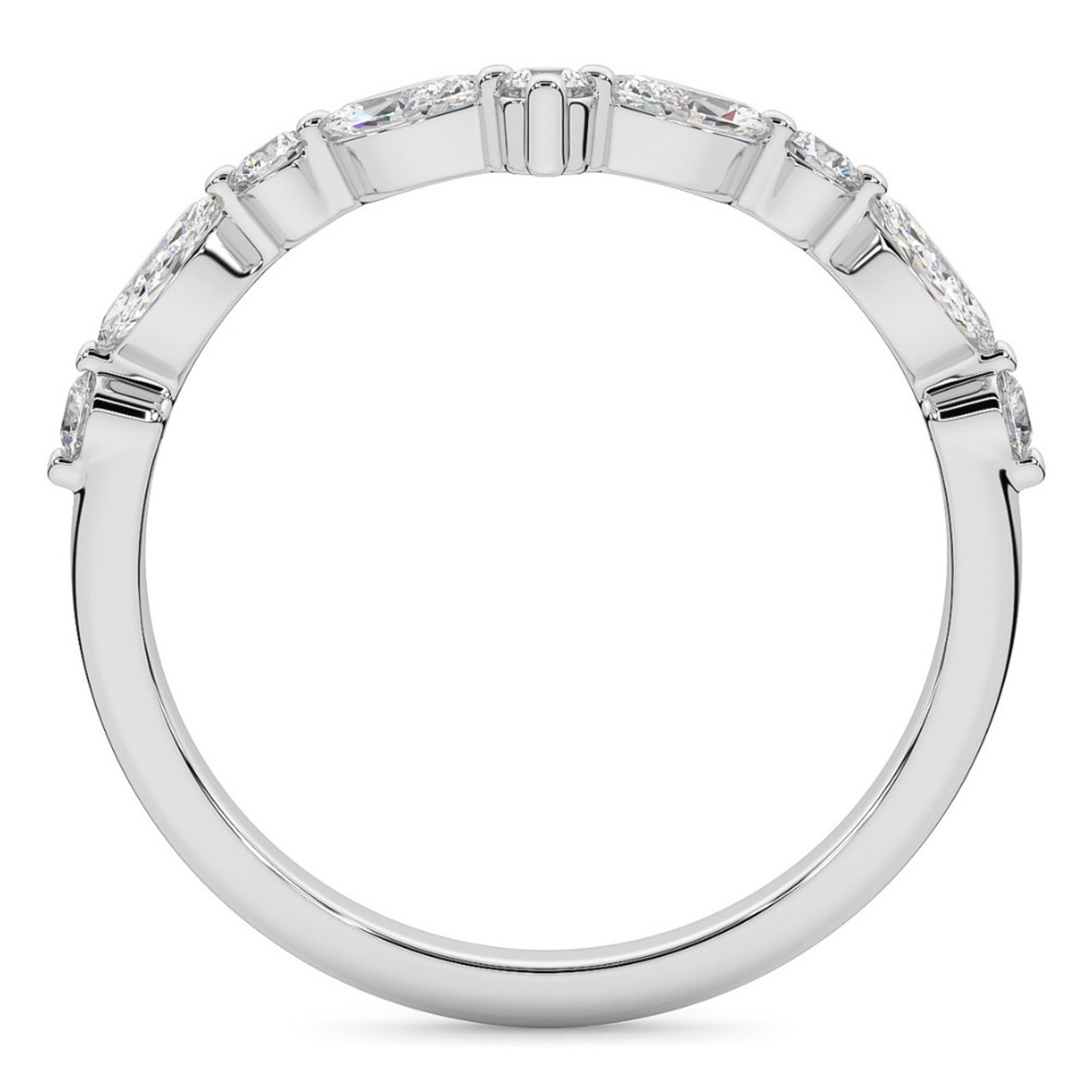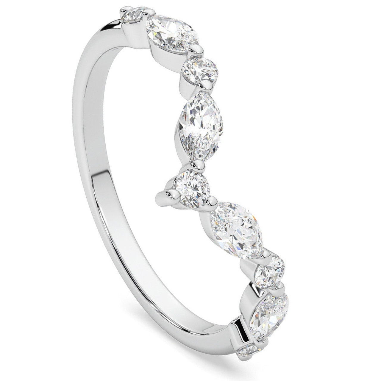 This delicate and unique women's ring features round and marquise cut genuine lab grown diamonds. All diamonds are prong set in solid 10k polished gold mounting. The ring is perfect to stack with other rings or accent your engagement ring.