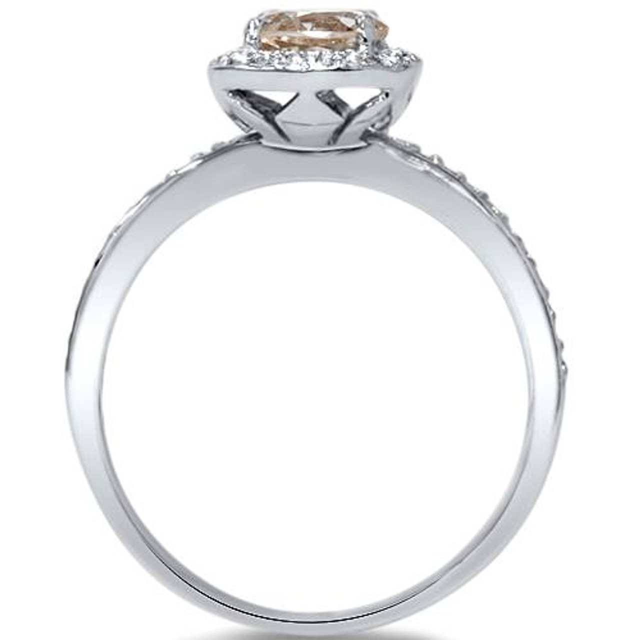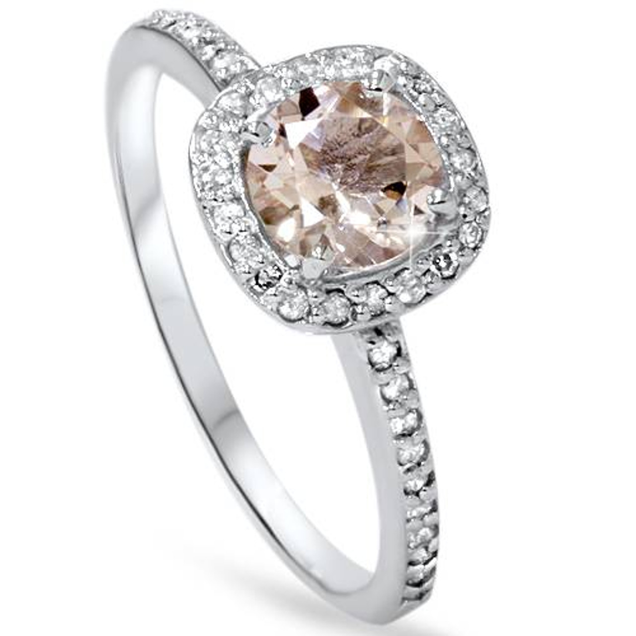 7/8ct Round Morganite & Diamond Cushion Halo Engagement Ring 14K White Gold (G-H, I2-I3)