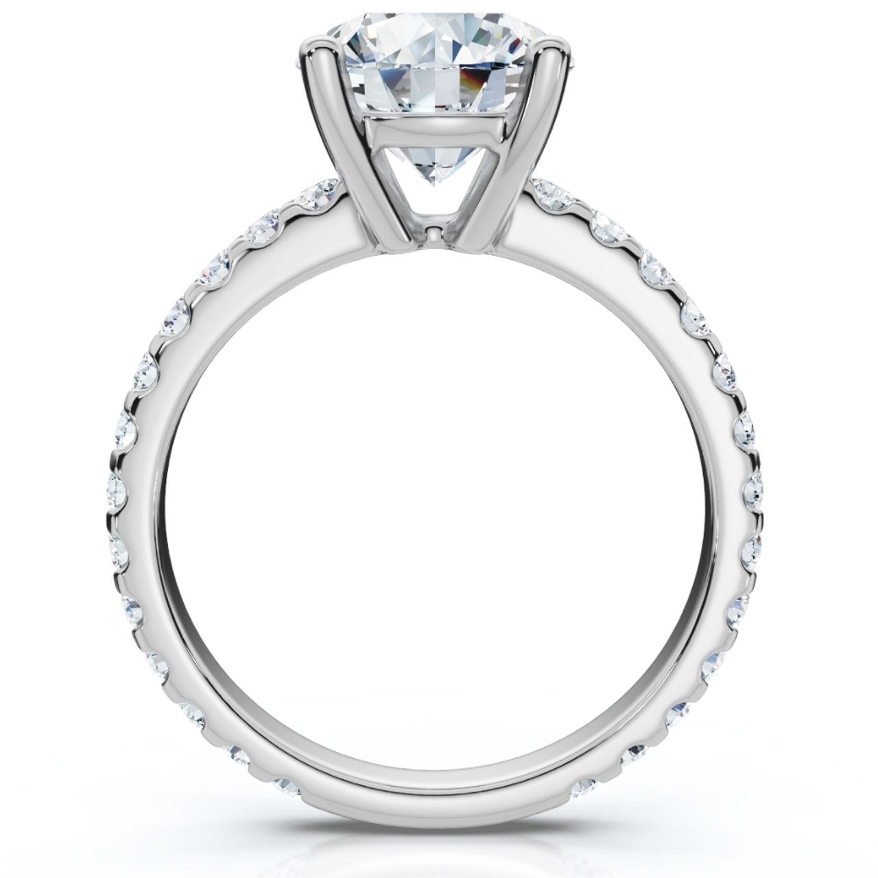 This stunning and classic women's engagement ring features a 3ct center diamond and pave round diamonds set on the side. All diamonds are set in solid 14k gold lab grown.
