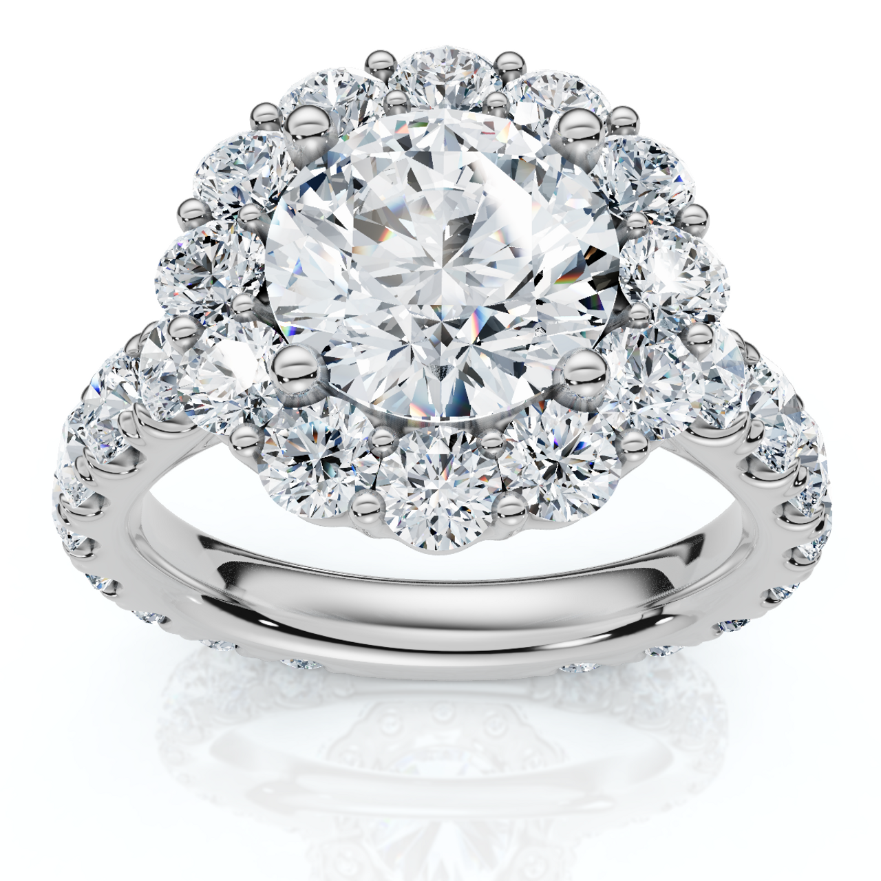 Make an unforgettable proposal with the magnificent Certified 4 1/4Ct Diane Diamond Engagement Ring. This show-stopping ring features a brilliant 2-carat lab-grown diamond as its dazzling centerpiece, beautifully encircled by a halo of smaller lab-grown diamonds, and further enhanced by a lavish 2.25 carats total of shimmering accent diamonds along the band. With a remarkable combined total carat weight of 4 1/4 carats and exceptional EF color and VS clarity, this ring radiates near-colorless brilliance from every angle. Crafted in your choice of luxurious 14k gold or enduring platinum, it's a truly grand and sophisticated symbol of your profound commitment.