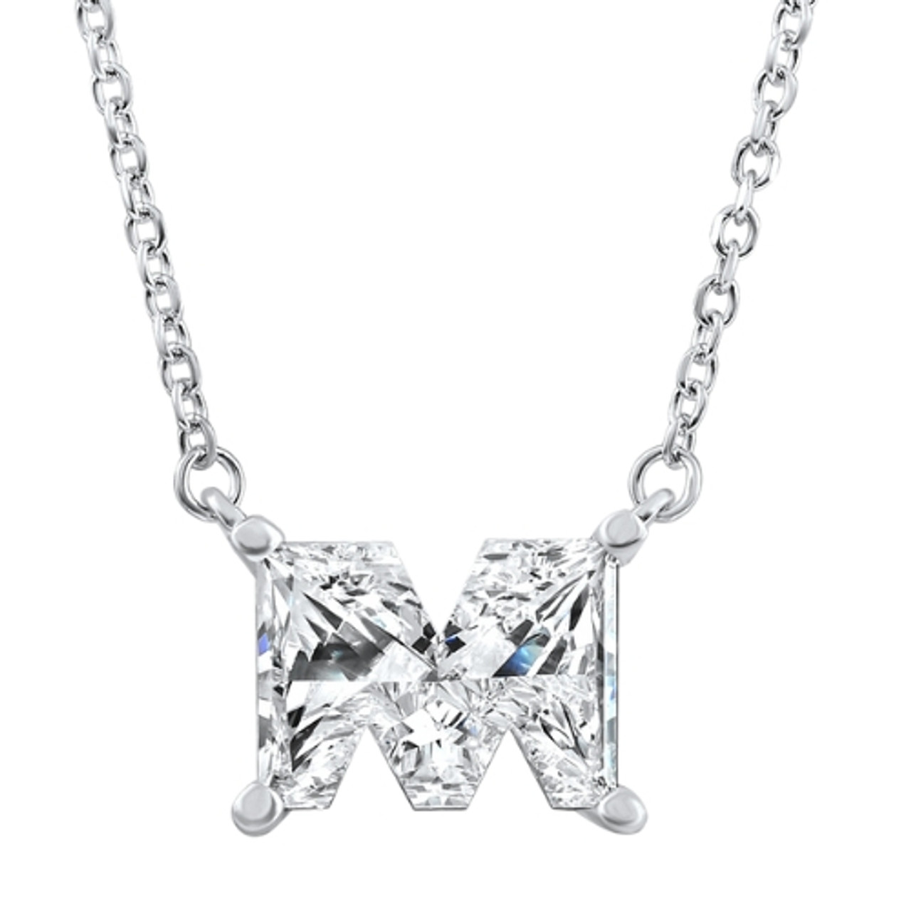 Diamond "M" Initial Pendant 18" Necklace 14K White Gold Lab Grown (G-H, VS)