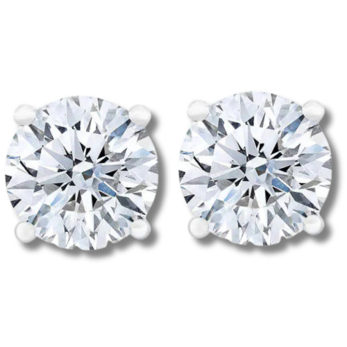 This stunning sparkly matching pair of womens earrings features two round brilliant cut genuine EX3 lab grown diamonds. The diamonds are four prong set in solid white or yellow gold basket style mountings with screw back settings.
